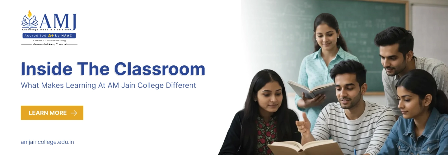 Agurchand Manmull Jain College (AMJC) is widely recognised not only for its academic reputation but also for the way learning unfolds inside its classrooms. At a time when higher education is rapidly evolving, AMJC has adopted teaching approaches that go beyond textbooks and traditional lectures. With a strong emphasis on clarity, application, and student participation, the college creates an environment where learning is engaging, relevant, and impactful, defining the AM Jain College classroom learning experience. As students step into AMJC classrooms, they experience a model of education designed to build understanding, confidence, and real-world readiness.